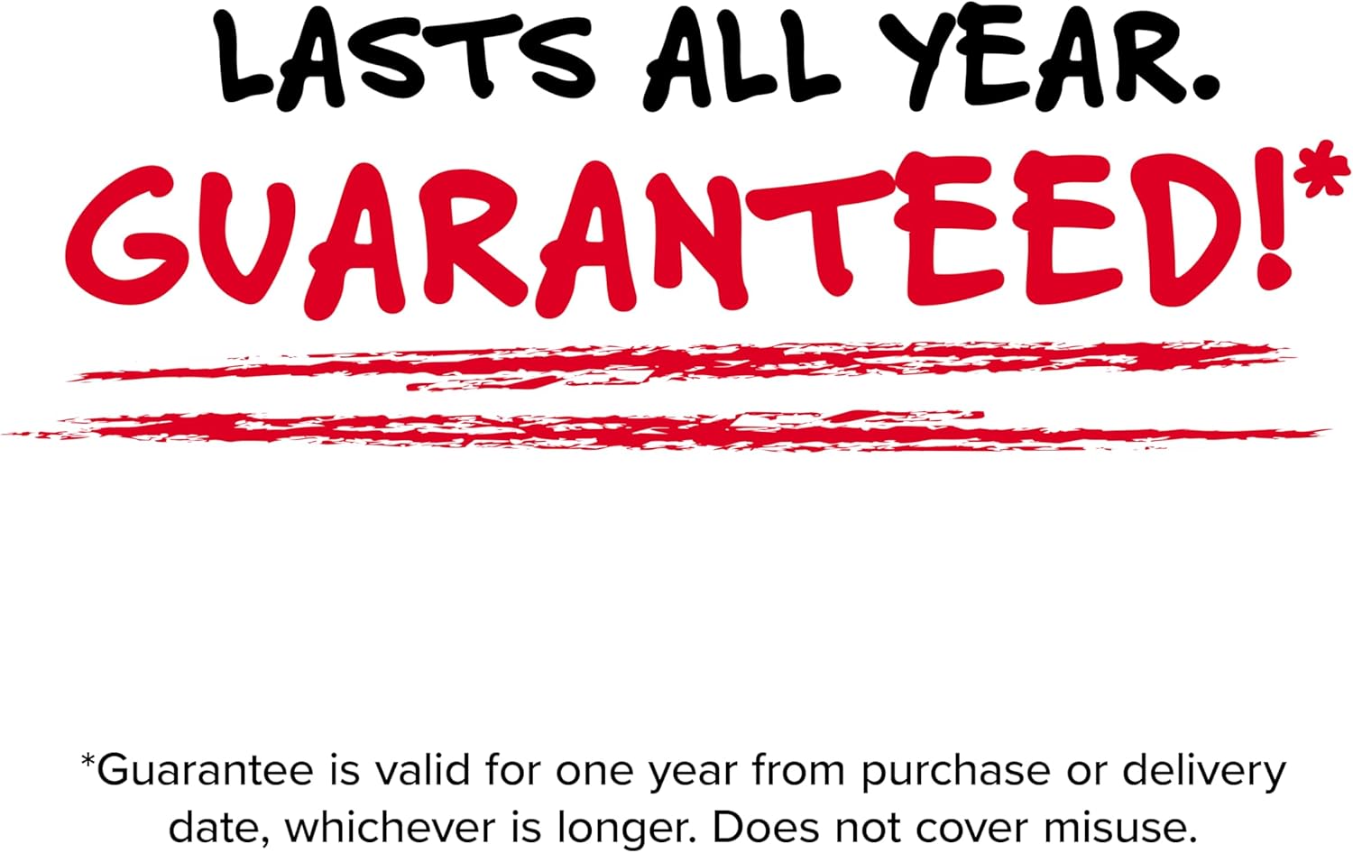 • LASTS ALL YEAR. GUARANTEED! Guarantee is valid for one year from purchase or delivery date, whichever is longer. Does not cover misuse.