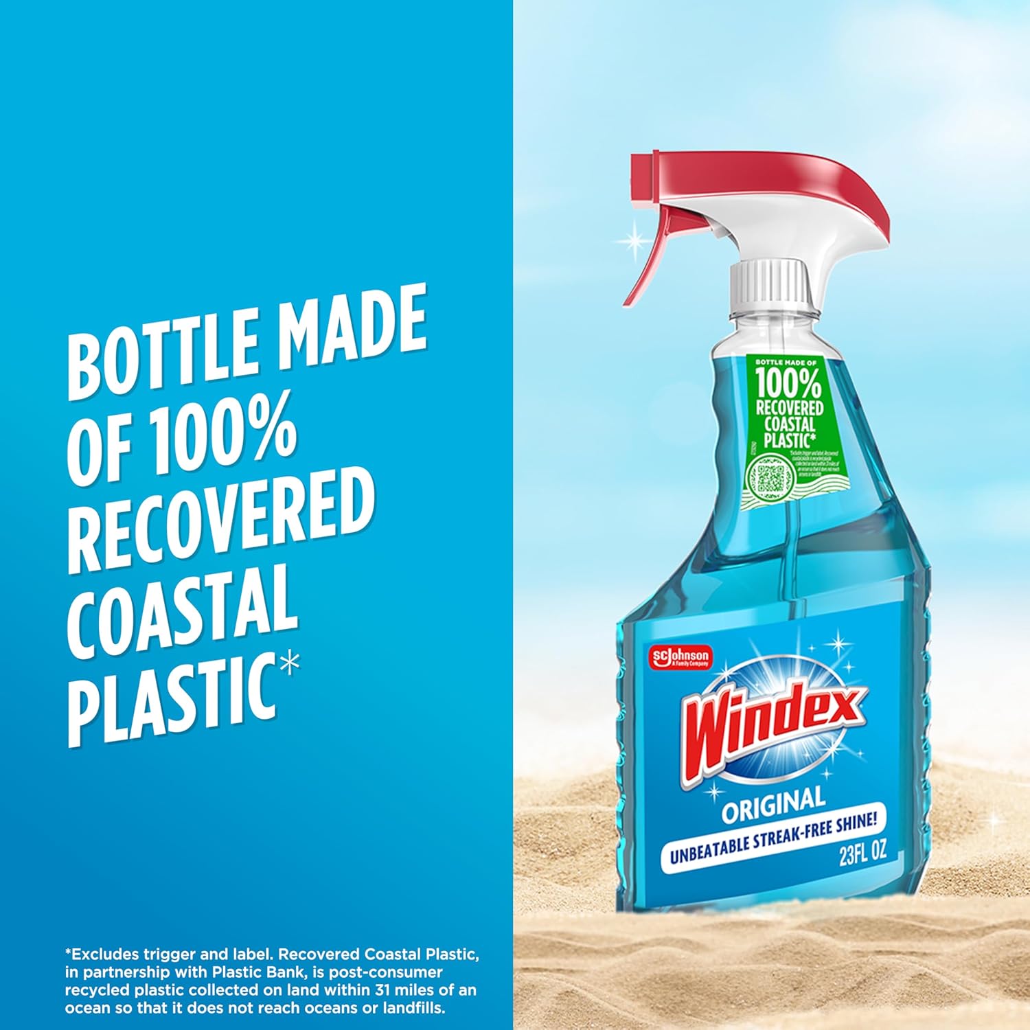 • Windex Commitment: spray bottles made from 100% recovered coastal plastic* in partnership with Plastic Bank, is post-consumer recycled plastic collected on land within 31 miles of an ocean so that it does not reach oceans or landfills.