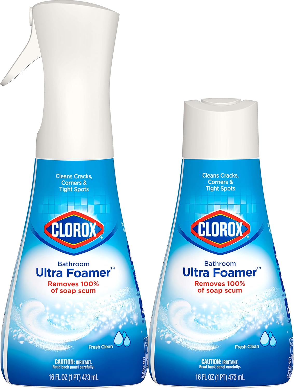 Clorox Bathroom Ultra Foamer, Household Essentials, Fresh Clean, 1 Spray And 1 Refill, 16 Fl Oz Each (Package May Vary)