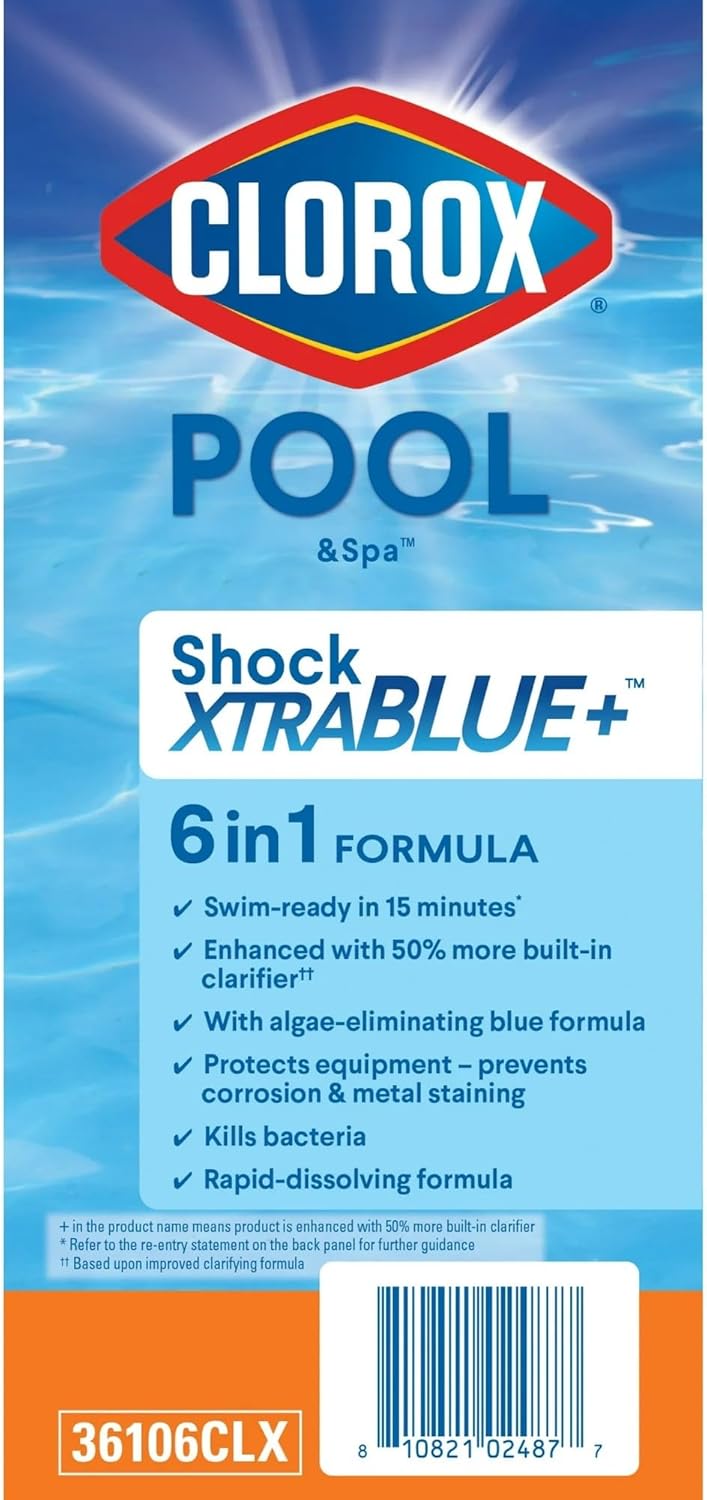 Clorox® Pool&Spa™ Shock XTRABLUE® Plus, Kills Bacteria & Algae In Swimming Pools, Swim Ready In 15 Minutes, (6 Pack)