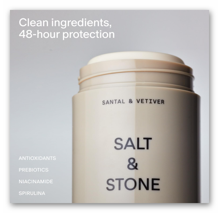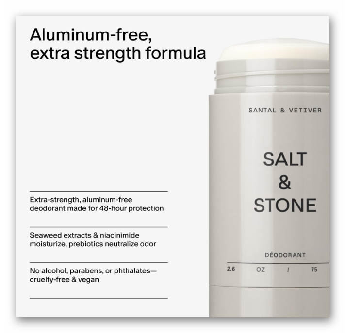 SALT & STONE Aluminum Free Deodorant | Extra Strength 48 Hour Protection For Women & Men | Made With Seaweed Extracts, Shea Butter & Prebiotics (Santal & Vetiver)
