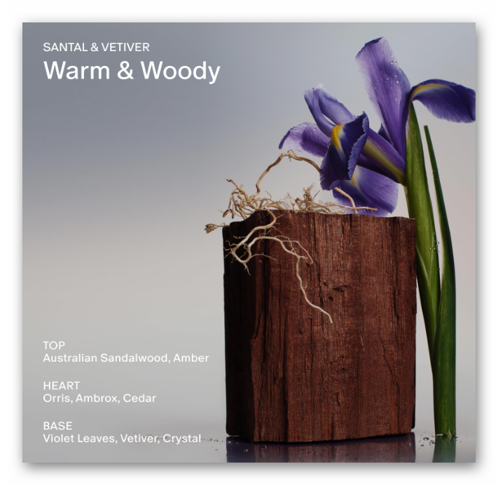 • Iconic Scents — Santal & Vetiver is warm, woody, and creamy—like an open fire in the heart of the woods.