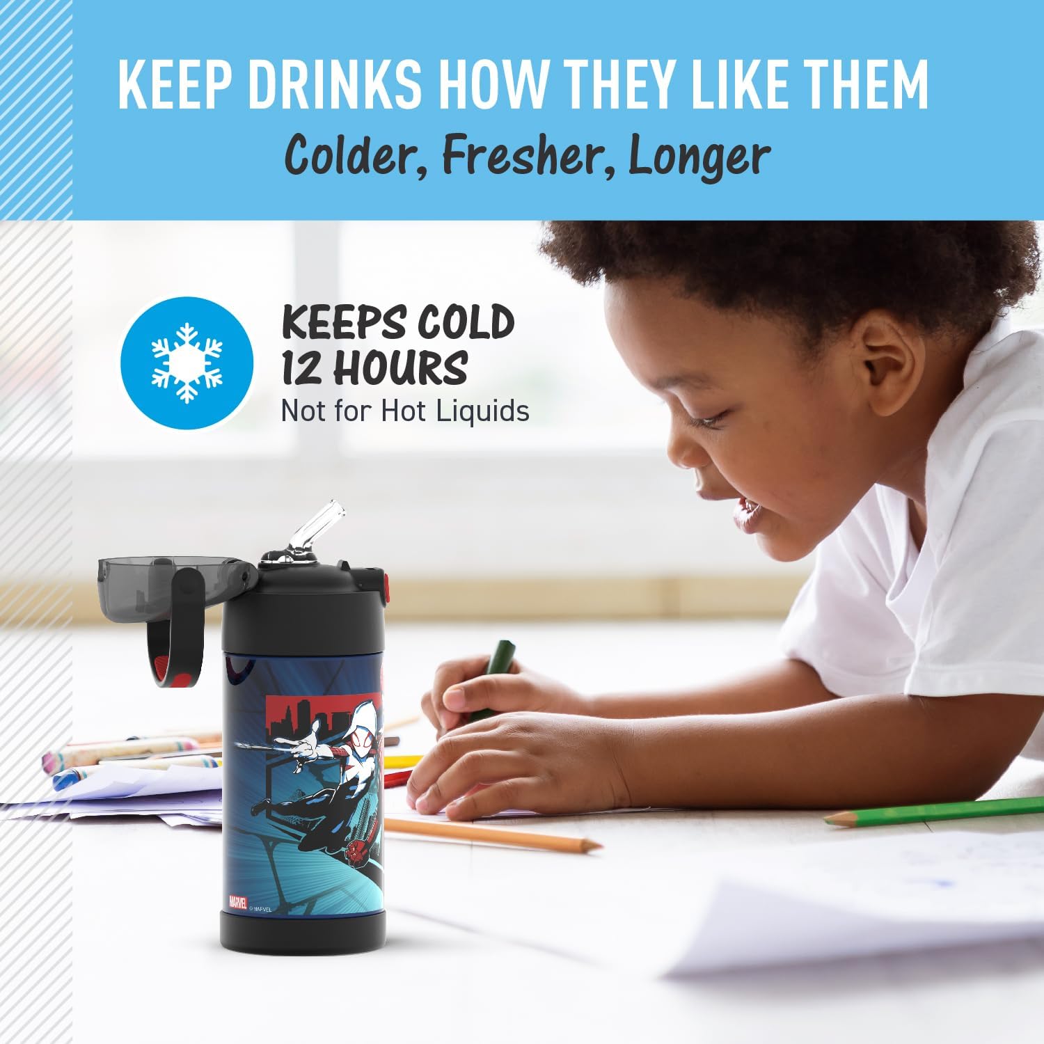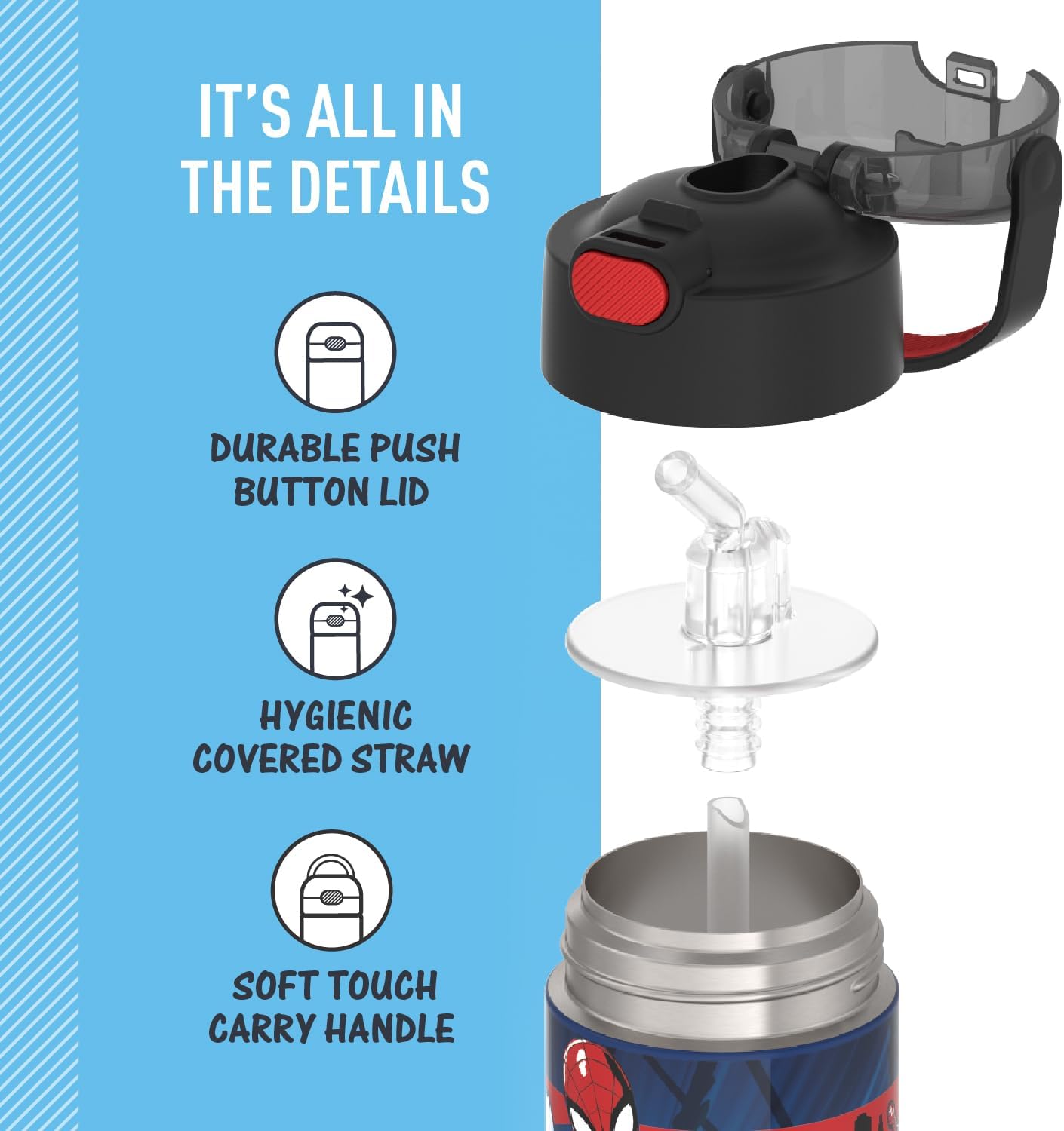 THERMOS FUNTAINER Water Bottle With Straw 12 Ounce Kids Stainless Steel Vacuum Insulated Water Bottle With Lid, Spider Man